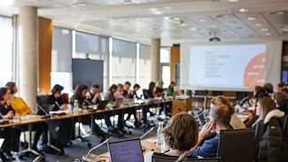 Na tle mapy Europy w centrum znajduje się centrala ARTE GEIE w Strasburgu. Obok niej znajdują się dwa ośrodki ARTE: ARTE Deutschland i ARTE France. Wokół Grupy ARTE znajdują się jej partnerzy w Europie: Fundusz Filmowy w Luksemburgu, RTÉ w Irlandii, RTBF w Belgii, YLE w Finlandii, LSM w Łotwie, ČT w Czechach, LRT w Litwie, ORF w Austrii, Suspilne Ukraina, SSR SRG w Szwajcarii, RAI we Włoszech, RTVE w Hiszpanii, SVT w Szwecji i NPO w Holandia.